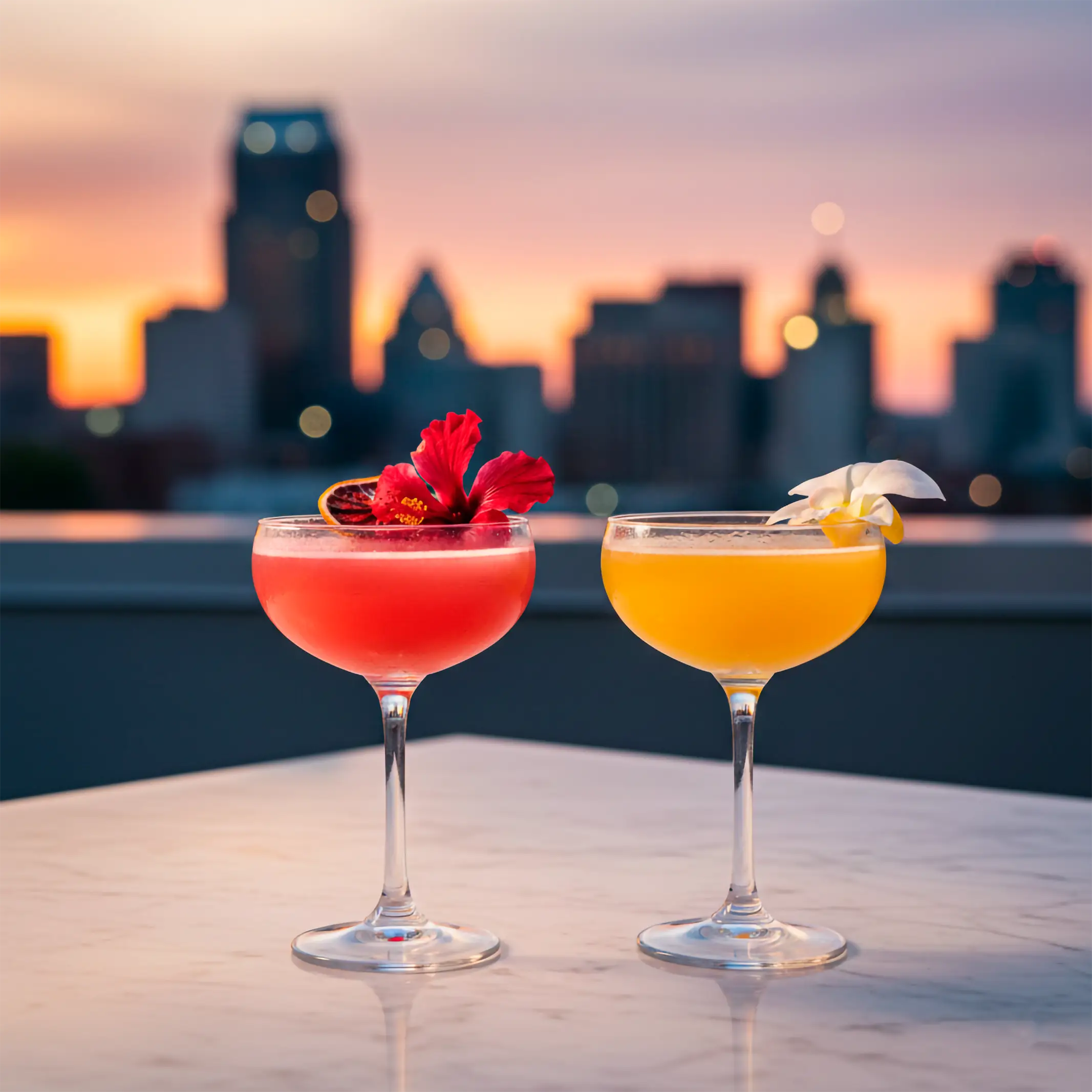 Ascienda a Aria, nuestro exclusivo lounge en la azotea, donde el skyline de Louisville se convierte en el telón de fondo para una velada inolvidable. Este santuario al aire libre fusiona la elegancia mediterránea con el ritmo relajado de una terraza cubana, ofreciendo una perspectiva tan única como nuestra cocina de fusión.